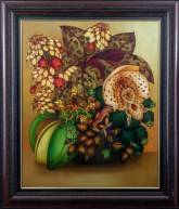 Monique Gourgaud (1938), bloemstilleven met vruchten en vlinders, olieverf op doek, r.o. gemonogrammeerd en gedateerd '89, 72 × 60 cm