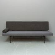 Slaapbank met donkergrijze bekleding en stalen onderstel, in de stijl van Martin Visser, 78 × 192 × 76 cm