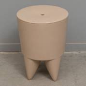 Kaki-kleurig kunststof krukje met onder het zitvlak opbergruimte, model Bubu, Philippe Starck, uitvoering XO, Frankrijk, jaren '90