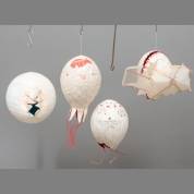 Marjanne de Boer (modern), vier magische luchtballonnen, handbeschilderd papier en lijm, grootse circa Ø 30 × 35 cm