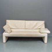 Crèmewit lederen bankstel met verstelbare armleuningen voor zitten of liggen, model Linea, uitvoering Jori, België -lichte gebruikssporen-, 80 × 195 × 75 cm