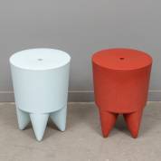 Twee kunststof krukjes met onder het zitvlak opbergruimte, model Bubu, ontwerp Philip Starck, uitvoering XOFrankrijk, jaren '90 -gebruikssporen-, 44 × Ø 32,5 cm