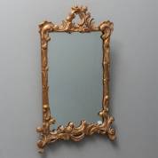 Spiegel in goudkleurige houten pâte lijst, Louis Quinze-stijl, 20e eeuw -verf is sleets, er ontbreekt een klein stukje linksonder-, 60 × 36 cm