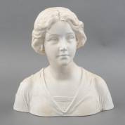 Biscuit buste van een jonge vrouw, gesigneerd Suteur, Frankrijk, circa 1900 -beetje verkleurd-, 33 × 33 cm