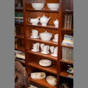 Creamware serviesgedeelte, model Windsor, uitvoering Wedgwood, bestaande uit: vijf diepe borden Ø 23 cm, vier soepkommen op onderschotels, theepot, suikerpot, zes kop-en-schotels, vier mokken met voet, twee mokken zonder voet, en diverse schalen en kommen