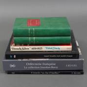 Zeven boeken: Zilver - Fuhring, P. et J. Kugel, 'Orfèvrerie française: la collection Jourdan-Barry'. Paris, 2005. 2 delen; C. Arminjon (Dir.) 'Quand Versailles était meublé d'argent'. (Tentoonstellingscat. Versailles). 2007; Lazare Duvaux, (marchand-bijoutier ordinaire du roy) 'Livre journal 1748-1758'. Paris 1965. 2 delen. Enz. Verschillende formaten. Gebonden