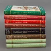 Acht boeken: The James ('Jimmy') A. de Rothschild collection at Waddesdon Manor. Editor: A. Blunt. 7 delen van de reeks. Fribourg, Office du Livre, 1968-1977. 7 delen Folio. Linnen, stofomslag. Met talrijke platen in kleur en andere illustraties. Sèvres porcelain, Meissen and oriental porcelain, Arms, armour and base-metalwork, Furniture, clocks and gilt bronzes 2 delen, Gold boxes, Illuminated manuscripts, Glass and enamels