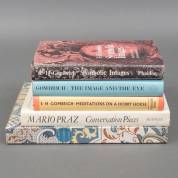 Vijf boeken: Gombrich, E.H. 3 titels: 'Meditations on a hobby horse', 'The image and the eye', 'Symbolic images'.1963-1982; Mario Praz, 'Conversation pieces'. 1971. 4to; Idem, 'L'ameublement: psychologie et évolution de la décoration intérieure'. 1964. 4to. Linnen, stofomslag