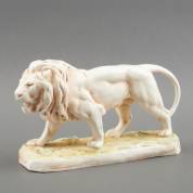 Aardewerk plastiek in de vorm van een lopende leeuw, mogelijk uitvoering Royal Dux, niet gemerkt, 18 × 30 × 9 cm