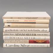 Acht boeken: Zilver - Oman, Ch. 'Caroline silver'.1970; J.F. Hayward, 'Huguenot silver in England'. 1959; A. Grimwade, 'Rococo silver'. 1974; R. Rowe, 'Adam silver'. 1965; Th.M. Duyvené de Wit-Klinkhamer, 'Geschiedenis van het Nederlandse zilver'. 1965; Enz. Verschillende formaten. Gebonden