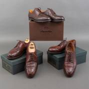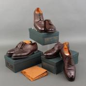 Drie paar bruin lederen herenschoenen, model Berkeley, uitvoering Edward Green, Northampton, 1× maat 9½/10 en 2× maat 10/10½ maar gevoelsmatig dezelfde maat -lichte gebruikssporen-