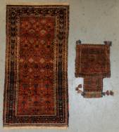 Perzisch tapijtje en kussentje, beide Belouche, 140 × 70 cm
