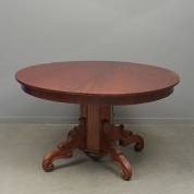 Ronde tafel met mahoniegefineerd blad en notenhouten voet -samengesteld-, 75,5 × Ø 133,5 cm