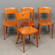 Vier kersenhouten stoelen met rond gat in de rugleuning, ontwerp Adolfo Natalini, uitvoering vermoedelijk Driade, Italië, jaren '90 -lichte gebruikssporen-