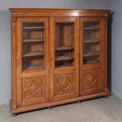 Eiken boekenkast, de drie schuifdeuren met beglazing en ruitvormig profiel, voorzien van planken, midden 20e eeuw -krasjes, lichte gebruikssporen-, 220 × 233 × 50 cm