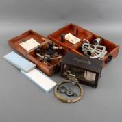 Divers navigatiemateriaal: paar sextanten in kisten, Azimut ring, kompasje en barograaf