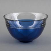 Donkerblauwe glazen schaal met kleurloze rand, uitvoering Orrefors, 11 × Ø 18 cm
