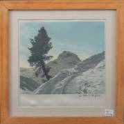 Hans Figura (1898-1978), winter in gebergte, kleurendruk op zijde, r.o. gesigneerd, 15 × 17 cm