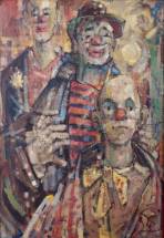 Jan Rodrigo (1921-2013), drie clowns, olieverf op doek, r.o. gesigneerd en gedateerd '70, 100 × 70 cm