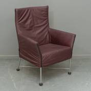 Paars lederen armfauteuil op verchroomd metalen onderstel, model Charly, ontwerp Gerard van den Berg, uitvoering Montis, eind 20e eeuw -gebruikssporen-
