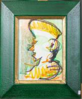 Rob Scholte (1958), polychroom hoofd en profil, krijt op papier, verso gesigneerd en gedateerd 2003, 30 × 22 cm