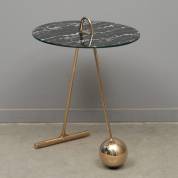 Bijzettafel met gemarmerd glazen blad op messing voet, modern, 62 × Ø 42 cm