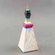 Kunststof sculptuur in meerdere kleuren met bovenin een klokje, ontwerp Alessandro Mendini, uitvoering Swatch, 5483/9999, 29,5 × 10 × 10 cm