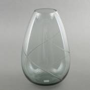 Eivormige rookglazen vaas met rondlopende ingeslepen spiraal, ontwerp Andries Dirk Copier, 1964, uitvoering Glasfabriek Leerdam, met etsmerk -wat kleine krasjes-, 25 × Ø 17 cm