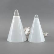 Twee conische wit glazen lampjes, uitvoering Ilu, Nederland, modern, 29,5 × Ø 19 cm en 25 × 16,5 cm