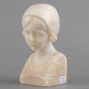 Rudolf Schmotz (1884-1965), albasten buste van een meisje, op de achterzijde gesigneerd, op de onderkant gemerkt 1705 -kleine beschadigingen-, 15 × 7 × 6 cm