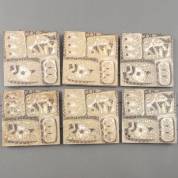 Zes porseleinen tegels met brutalistisch vissendecor, ontwerp Nils Thorsson, uitvoering Royal Copenhagen, jaren '60, 15,3 × 15,3 cm