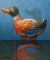 Epko 'Co' Cordel (1957), speelgoedeendje, olieverf op board, l.o. gesigneerd, 26 × 22 cm