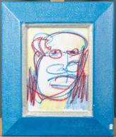 Rob Scholte (1958), hoofd in blauw, rood en geel, krijt op papier, verso gesigneerd en gedateerd 2003, 30 × 22 cm