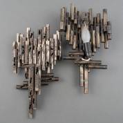 Claire Begheyn (1950), 'Landscape', wandsculptuur hout en kunstbont, gesigneerd en gedateerd 2002, 77 × 82 cm
