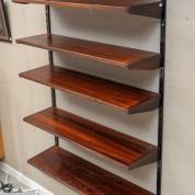 Diverse Kai Kristiansen wandsysteem-delen: zwarte meurbeugel, bruine muurbeugel en acht palissander plankjes -alle plankjes defect-, uitvoering FM Möbler, Denemarken