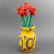 Peter Bastiaanssen (1957), tulpen in geel-paarse vaas, beschilderd hout, niet gesigneerd -krimpscheur-, 54 × Ø 18 cm