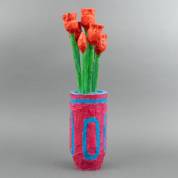 Peter Bastiaanssen (1957), tulpen in roze-blauwe vaas, beschilderd hout, niet gesigneerd, 60 × Ø 13 cm