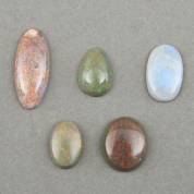Vijf cabochongeslepen opalen in diverse kleuren, Australië, langste steen 3 cm