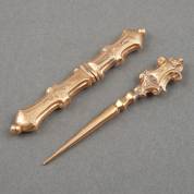 BWGG naaldenkoker met fijn gegraveerd decor en 14kt gouden pijpenwroeter, eind 19e eeuw, gewicht 6,6 gram, beide 6,5 cm