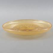 Geel glazen schaal met tincraquelé, ontwerp Andries Dirk Copier, uitvoering Glasfabriek Leerdam, onderop met etsmerk -wat krasjes in het midden-, Ø 34,5 cm