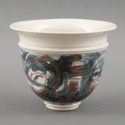 Gert de Rijk (1945-2009), kom met polychroom droedeldecor, gesigneerd, 16,5 × Ø 20,5 cm
