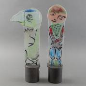 Theo de Haan (1930), twee glasobjecten op natuurstenen basementen: figuur, hoogte 50 cm, en vogel, hoogte 47,5 cm