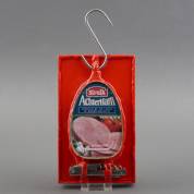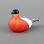 Rood-witte glazen vogel met zwarte kop, ontwerp Oiva Toikka, uitvoering Iittala, 9 × 13 × 7 cm