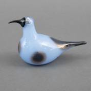 Lichtblauwe glazen vogel lusterzwarte vlekken en snavel, ontwerp Oiva Toikka, uitvoering Iittala, 10,5 × 17 × 7 cm