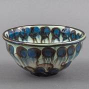 Herman Kähler (1876-1940), aardewerk kom met blauw-wit glazuur, onderop gemonogrammeerd -stukje glazuurverlies in rand-, 8,5 × Ø 17,4 cm