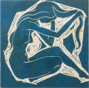 Han Snel (1925-1998), vrouw die met haar haar speelt, houtsnede, l.o. gesigneerd en gedateerd Bali '72, 32 × 32 cm