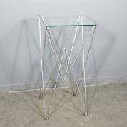Bijzettafeltje met glazen blad, gedragen door aluminium buisjes -aluminium buisjes wat gevlekt-, 82 × 40 × 40 cm