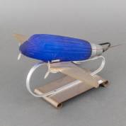 Tafellamp met blauwe glazen kap en metalen voet, model Airplane Lamp, uitvoering Sarsaparilla Deco Designs, Verenigde Staten, 1978 -gebruikssporen, metaal geoxideerd-, 17 × 33 × 28 cm