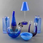 Diverse blauw glazen objecten, waaronder uitvoering Orrefors en Kosta Boda, en herkomst Murano