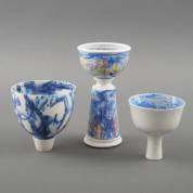 Gert de Rijk (1945-2009), drie diverse kommen op voet, de hoogste gesigneerd en gedateerd '96, hoogste 20 cm
